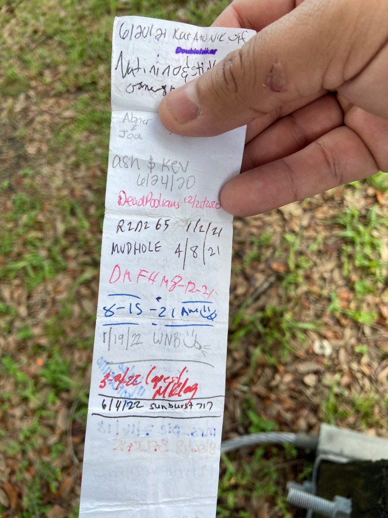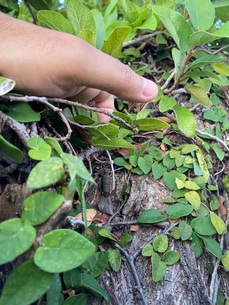 At first I was doing it because he was so excited about it but wasn’t particularly interested. Everything changed one night when we found a cache near my house. I attempted it once on my own and once with him and this was my third visit. I was randomly standing in a spot to get my dog out of the road, looked over and found the cache hidden in the tree we had been searching. I was hooked.